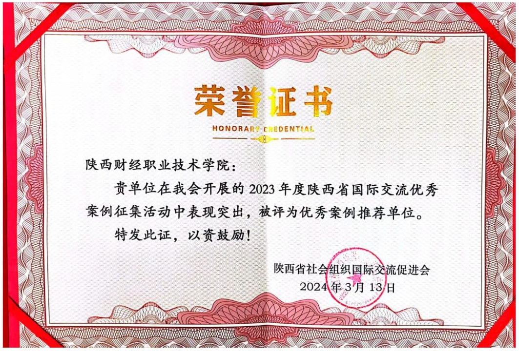近日,从陕西省社会组织国际交流促进会获悉,我校在2023年度陕西省国际交流优秀案例征集活动中表现突出,被促进会评为优秀案例推荐单位。