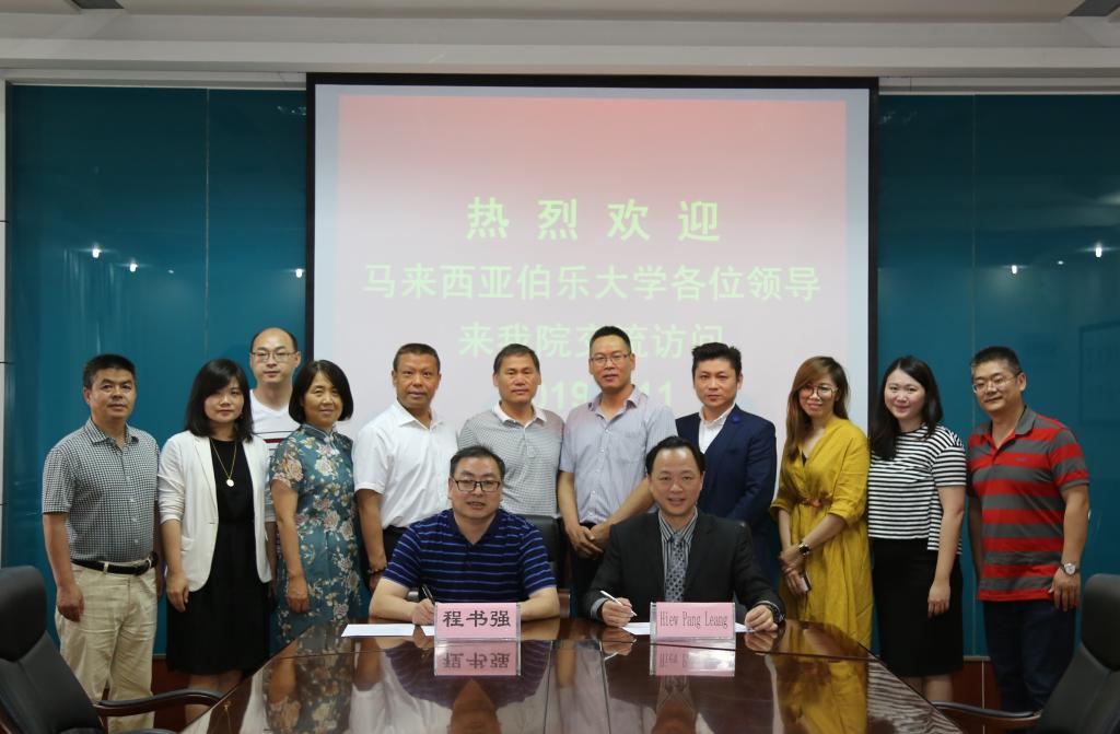 为了贯彻落实国务院办公厅《关于深化产教融合的若干意见》,推动高职教育结构性改革,加快我院现代化职业教育建设,2019年6月11日上午,马来西亚伯乐大学丘邦亮校长一行6人来我院交流洽谈,学院院长程书强、副院长刘晓玉出席,教务处处长马西牛、经济与金融学院院长景海萍、商学院院长董媛、管理学院副院长张沛强以及国际交流与合作中心负责人杨华参加此次座谈座谈会。会议由刘晓玉主持。