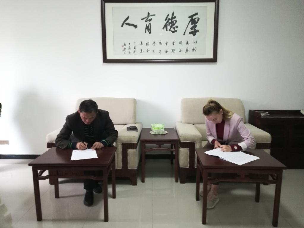 外教与刘晓玉副院长签约现场